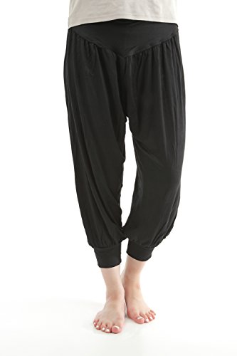 サルエルパンツはルーズだけど、すそがピッチリしていてズレにくいので、ヨガ上級者でも好む人が多いんです。初心者のうちはポーズの目視が重要なのでおすすめできませんが、どうしても下半身のラインを隠したいならアリでしょう。